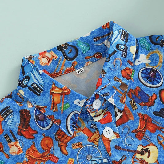 Baby/Toddler Boys Western Button Down Shirt - Guitar Cowboy