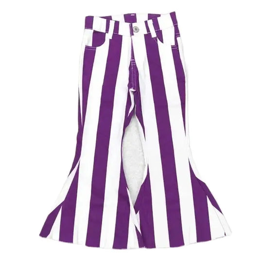 Girls Bell Bottom Denim Pants - Western Purple Stripe Kids