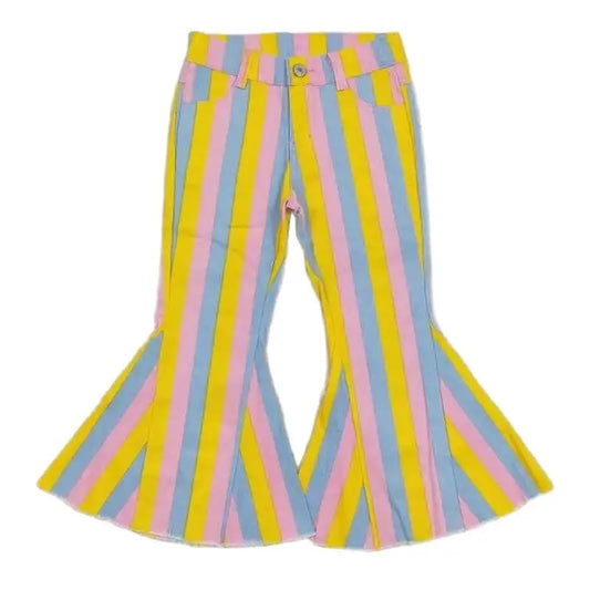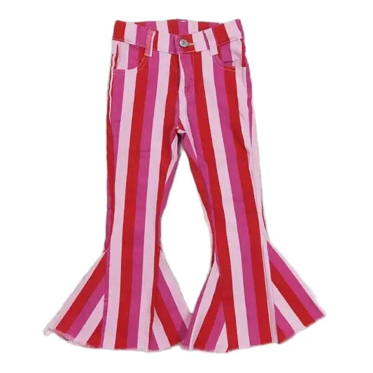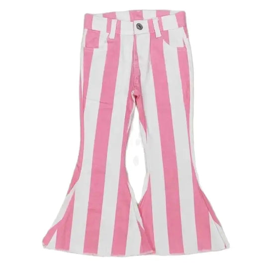 Girls Bell Bottom Denim Pants - Western Pink Stripe Kids