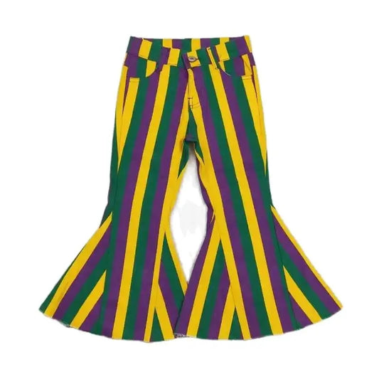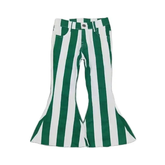 Girls Bell Bottom Denim Pants - Western Green Stripe Kids
