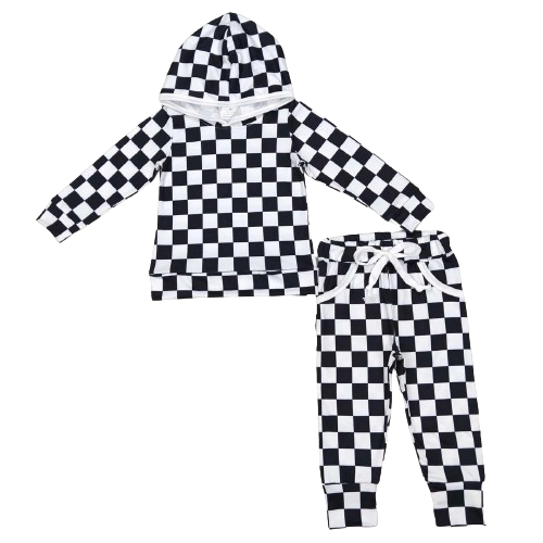 Black & White Checkerboard Long Sleeve Hoodie + Pants Set