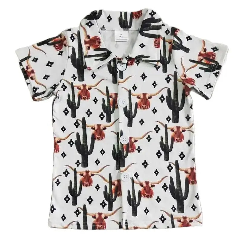 Boys Cactus Steer Western Button Up Shirt - Kids Clothes
