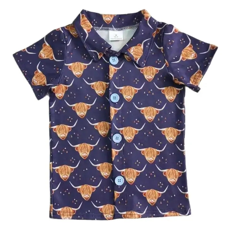 Boys Collared Down Highland Cow Western Shirt - Kids Clothes