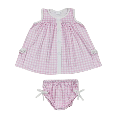 PLAID LAYETTE Pink Sleeveless Lace Trim Top & Bummie Set
