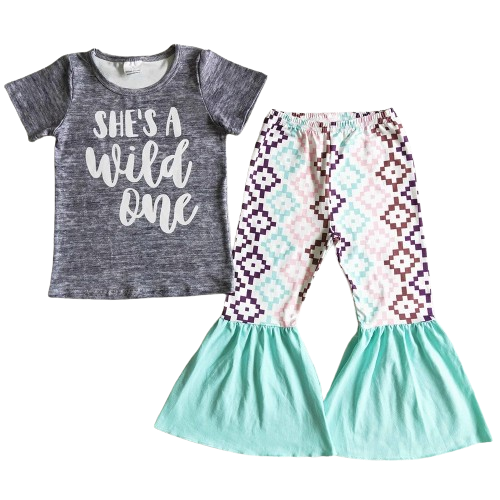 Keywords you may be looking for: Wild One Boho Geo, Bell Bottoms, Bell Bottom Pants, Flares, Flare Pants, Milk silk, Stretchy, Comfy, Western, Southwest Style, Gray, Teal. Girls Bell Bottom Outfit, Bell Bottoms Outfit, Kids Outfit, Bell Bottom Pants, Flare Pants, Western, Southwest, Flares. Spring outfit, Summer outfit, Fall outfit.