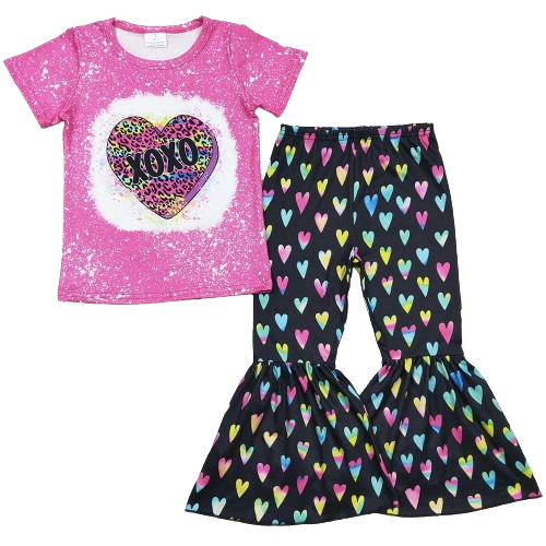 XOXO Hearts Leopard -Western Bell Bottoms Outfit Kids